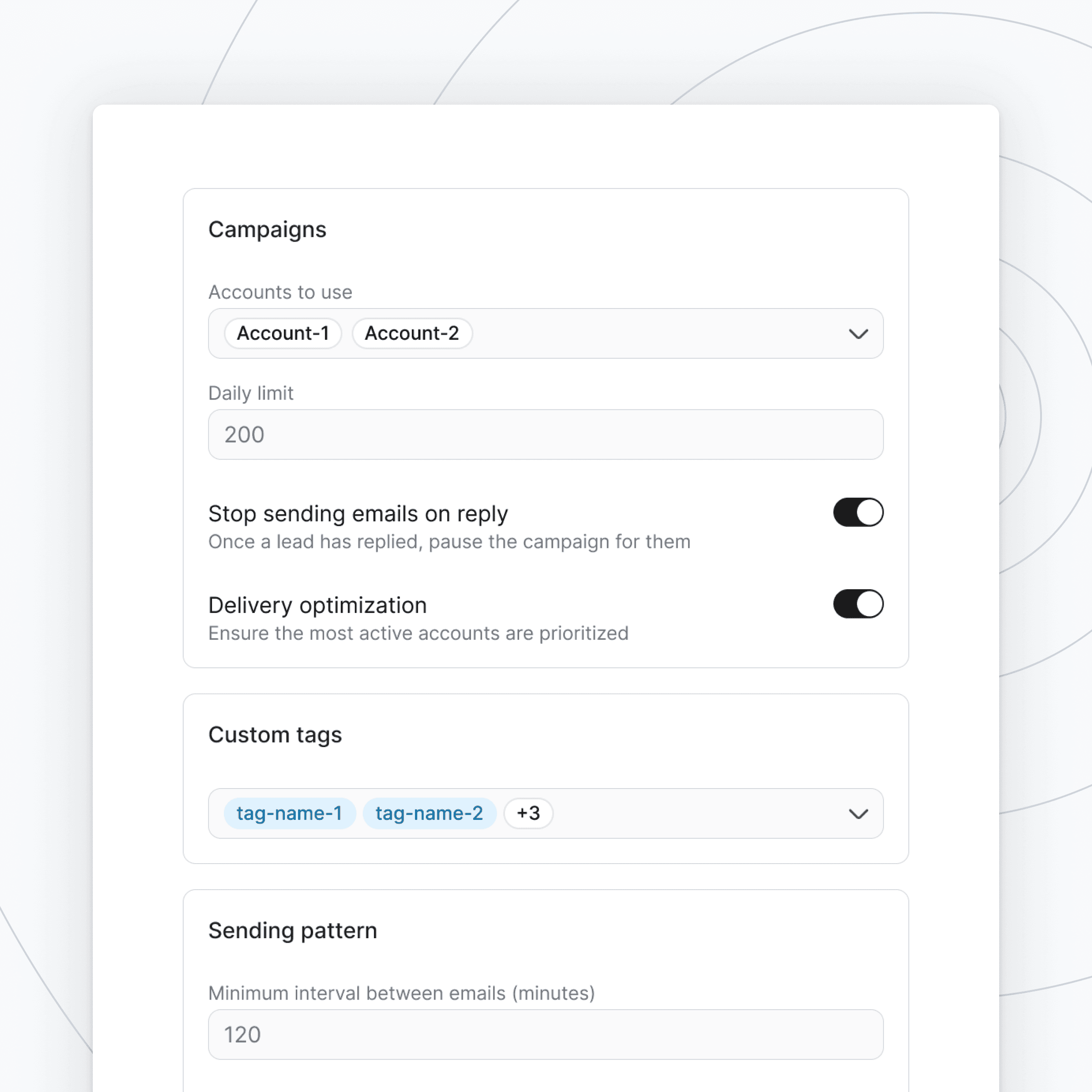Connect multiple sending accounts and Stamina rotates across them automatically — keeping volume low per inbox and deliverability high across the board. Set daily limits, minimum send intervals, and let delivery optimization push emails through your most active accounts first. The kind of configuration that used to take a dedicated ops person.