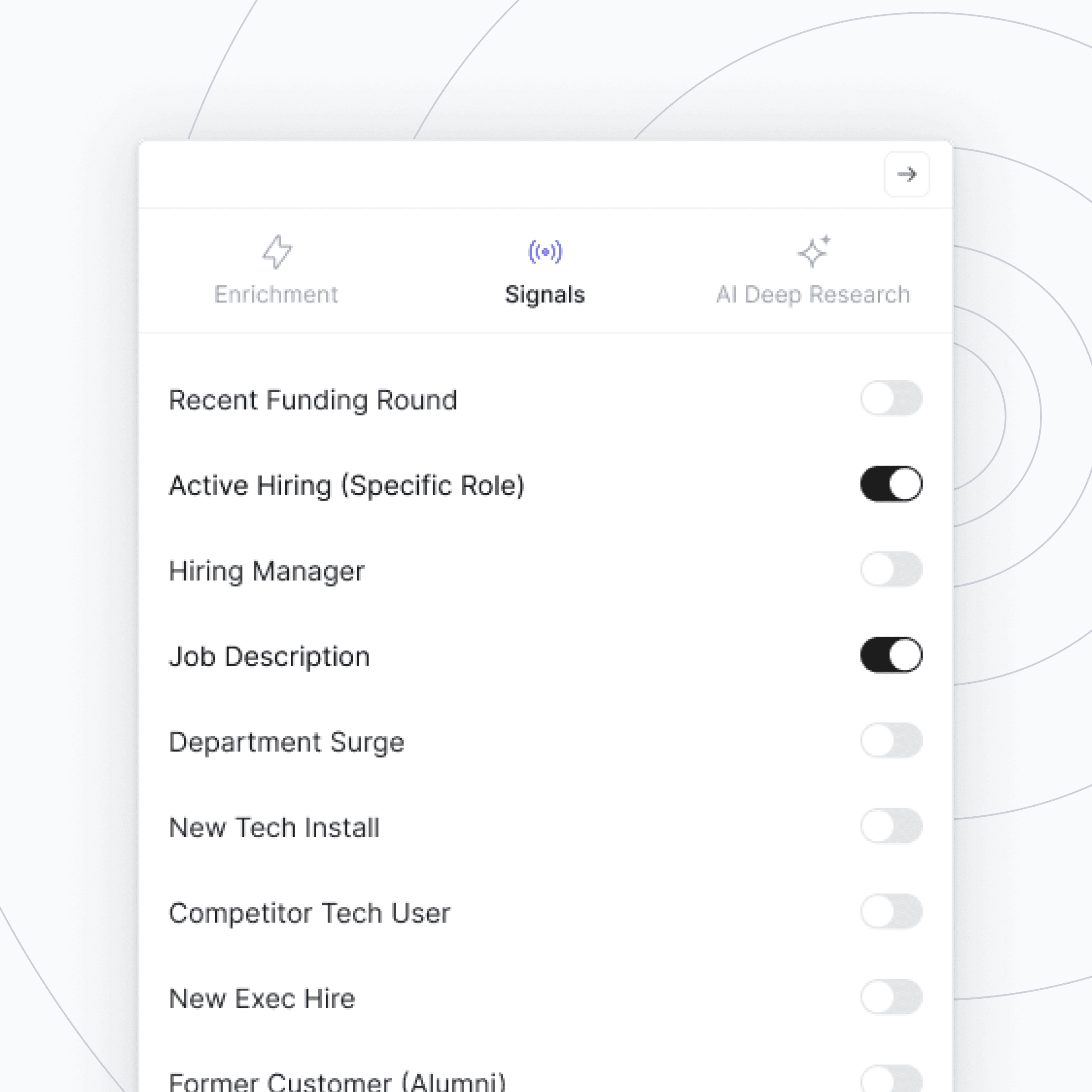 AI-powered research and first-line generation that pulls live signals from LinkedIn, company websites, job posts, funding news, and more. No 47-step table configurations. No waterfall logic to debug.