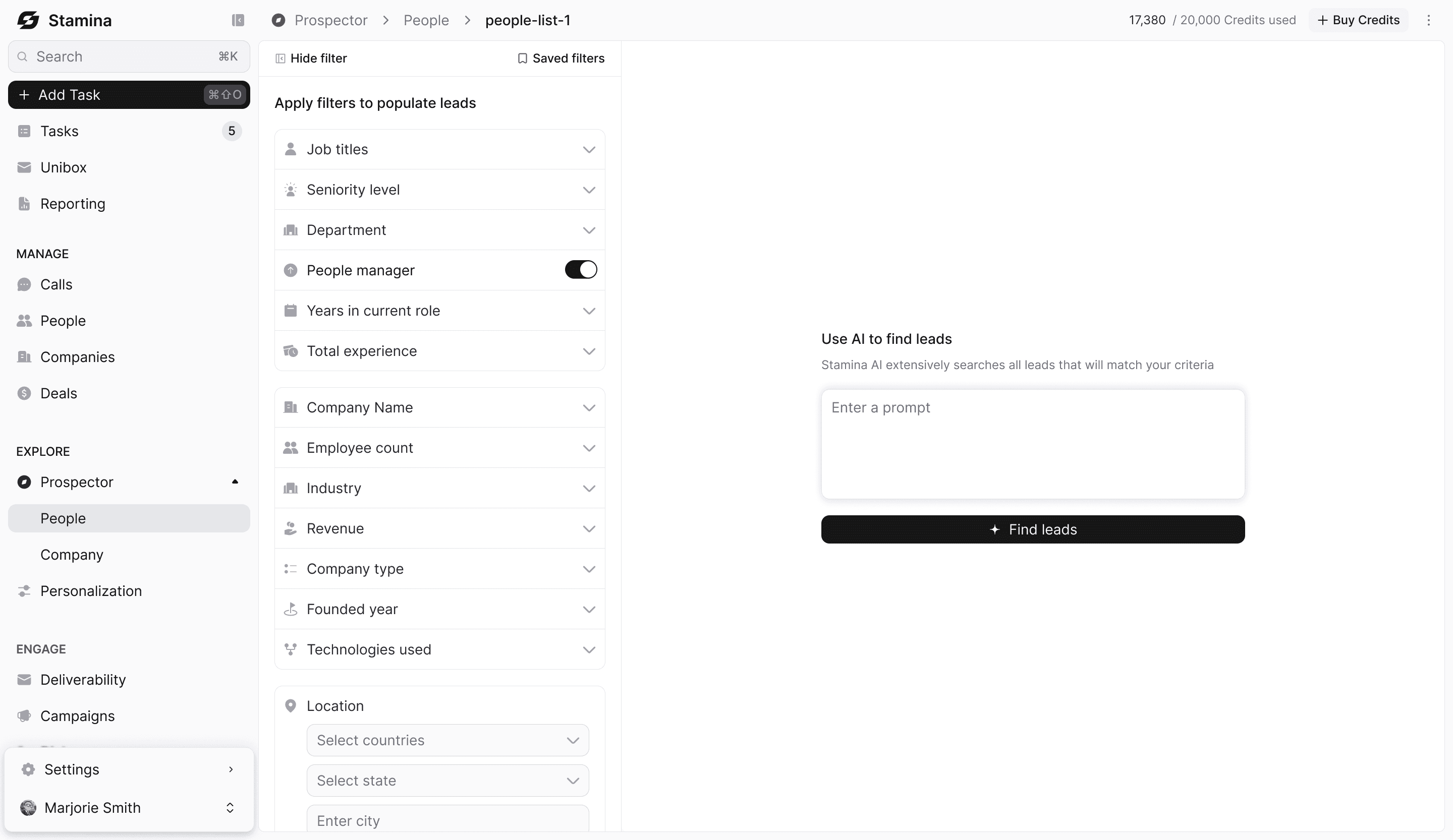 Stamina's Prospector gives you a database of millions of companies and contacts — searchable by firmographics, intent signals, and plain-English AI prompts. Stop guessing. Start prospecting with precision.