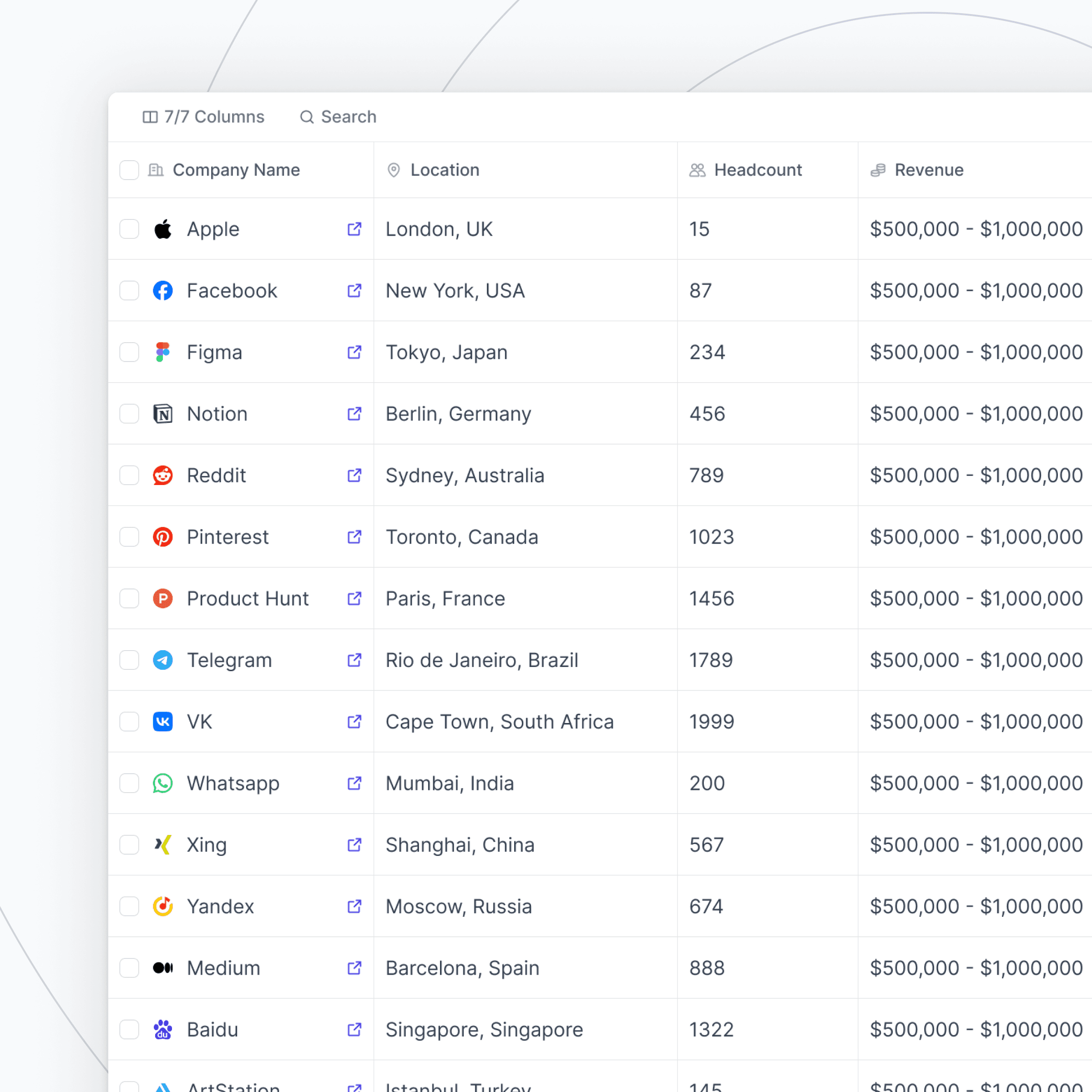 View headcount, location, and revenue at a glance